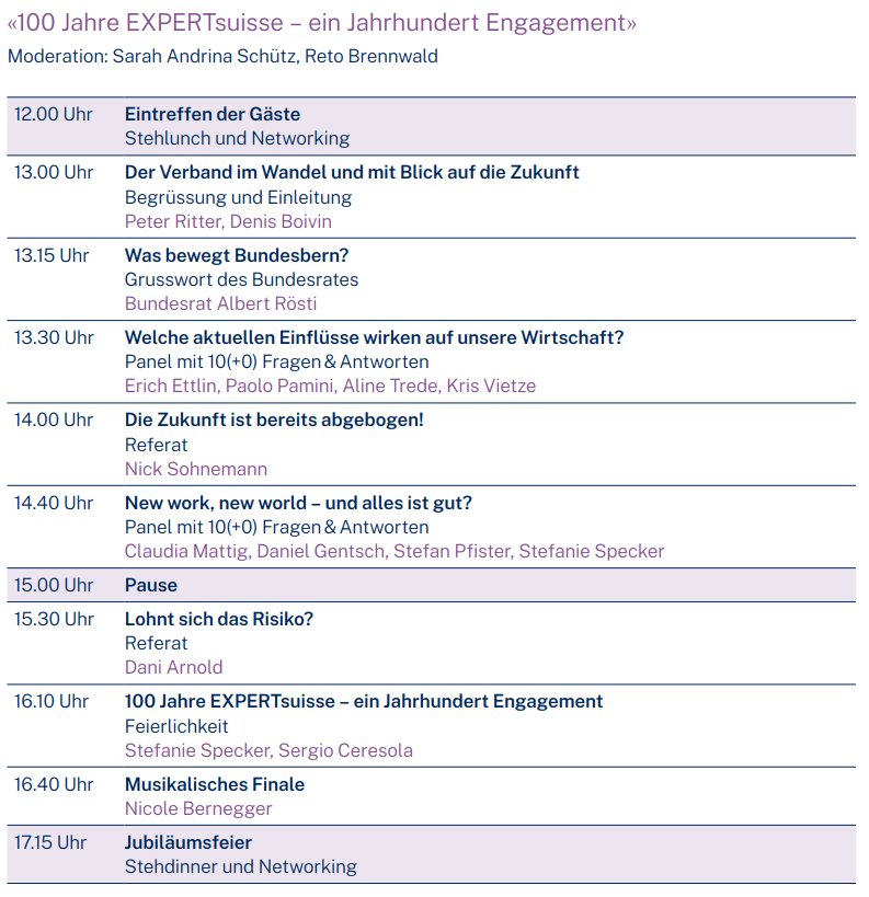 Gemeinsam mit Ihnen stossen wir an auf 100 Jahre EXPERTsuisse. Wir feiern unsere Jubiläumstagung am 20. November 2025 im Kongresshaus in Zürich. Es erwarten Sie inspirierende Referate, neue Impulse und Austausch in feierlicher Atmosphäre.